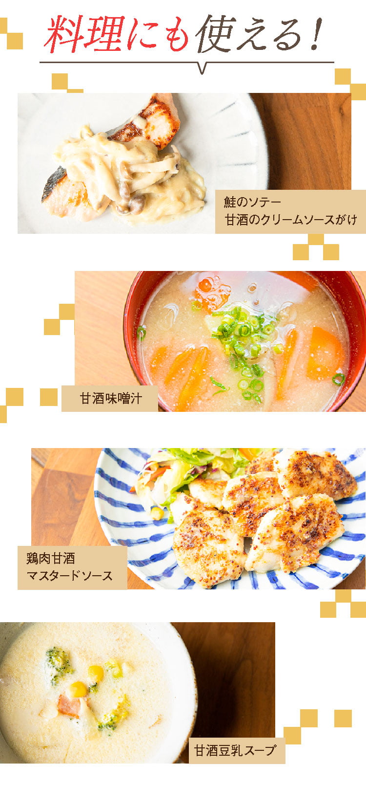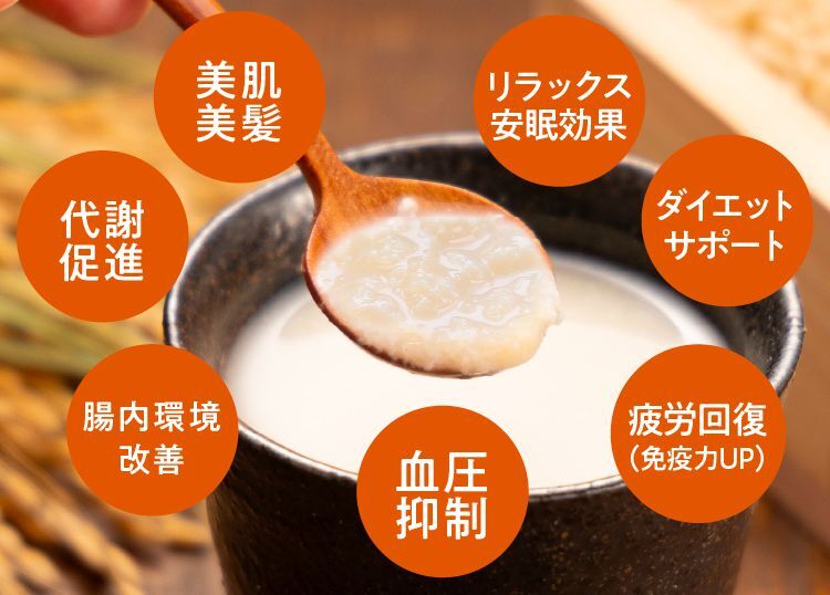 酒粕甘酒と違い、米麹からできた甘酒なのでノンアルコール・砂糖不使用なのでお子様から妊娠中、授乳中の方でも安心してお飲みいただけます。